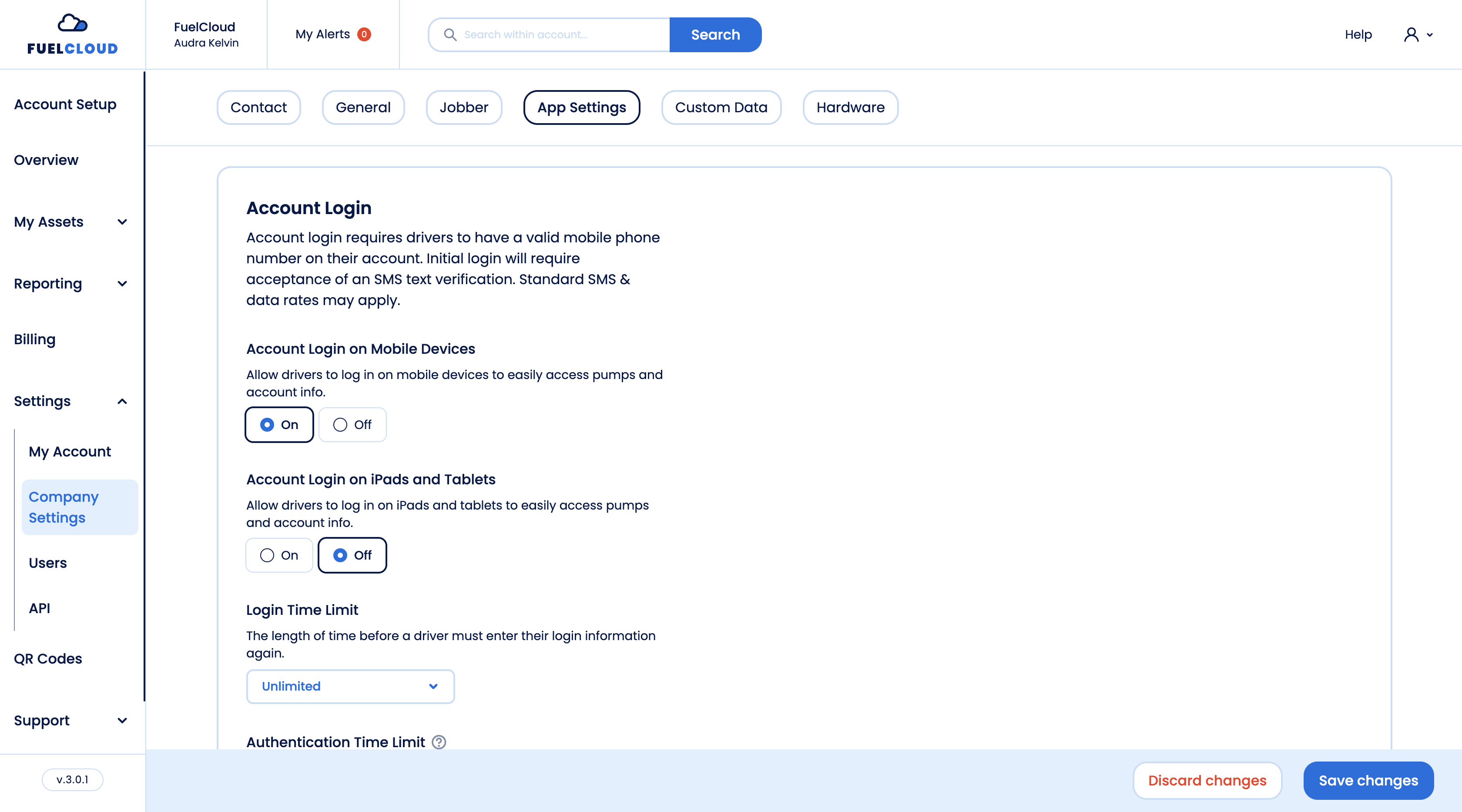 NOTE: If you turn on account login for phone users, you will need to make sure their mobile number is entered on the driver profile.