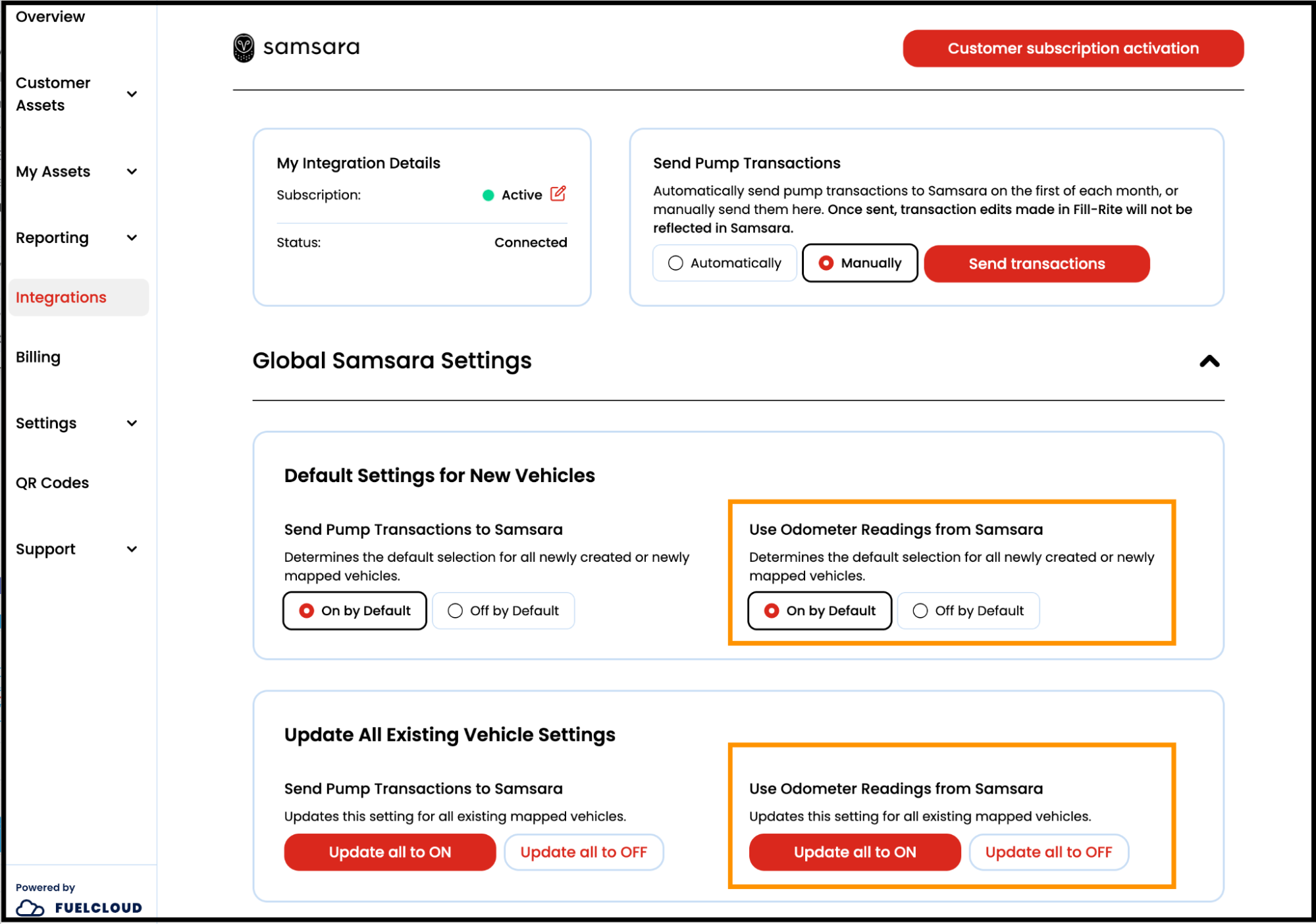 When pump transactions are uploaded to the server from the app or created via the web, Fill-Rite will update the odometer value for the vehicle based on the Samsara gateway reading at the time of the transaction.