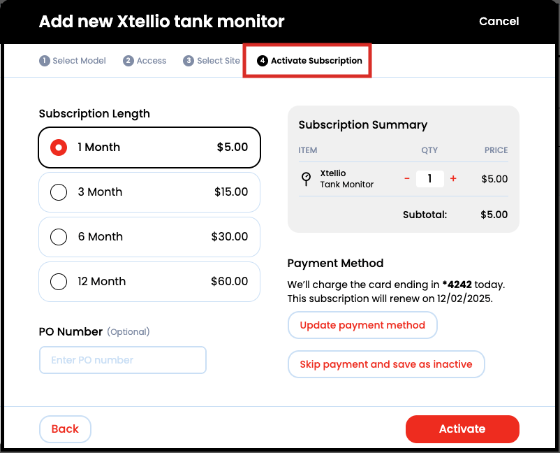 - Activate your Subscription. You can choose 1-, 3-, 6-, or 12-month subscription lengths at the price of $5/month.