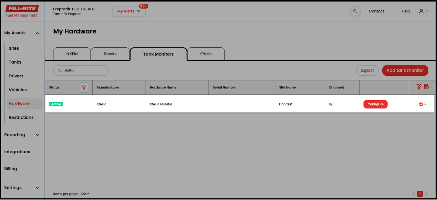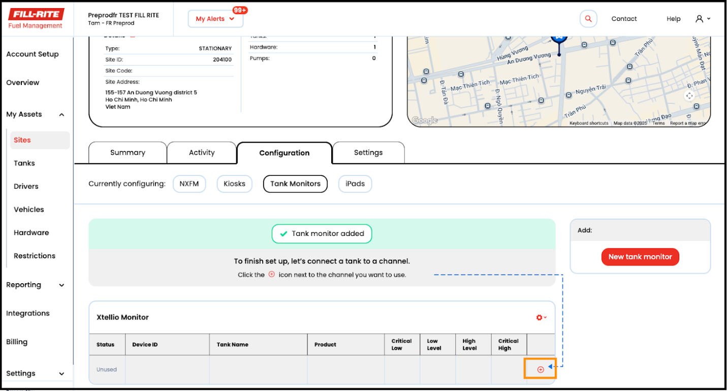 - Select a Fill-Rite Site to add your Xtellio Tank Monitor